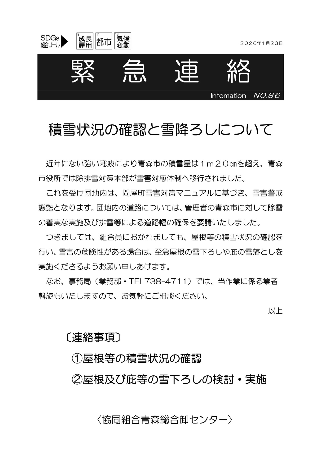 【緊急連絡】 積雪状況の確認と雪下ろしについて 案内書