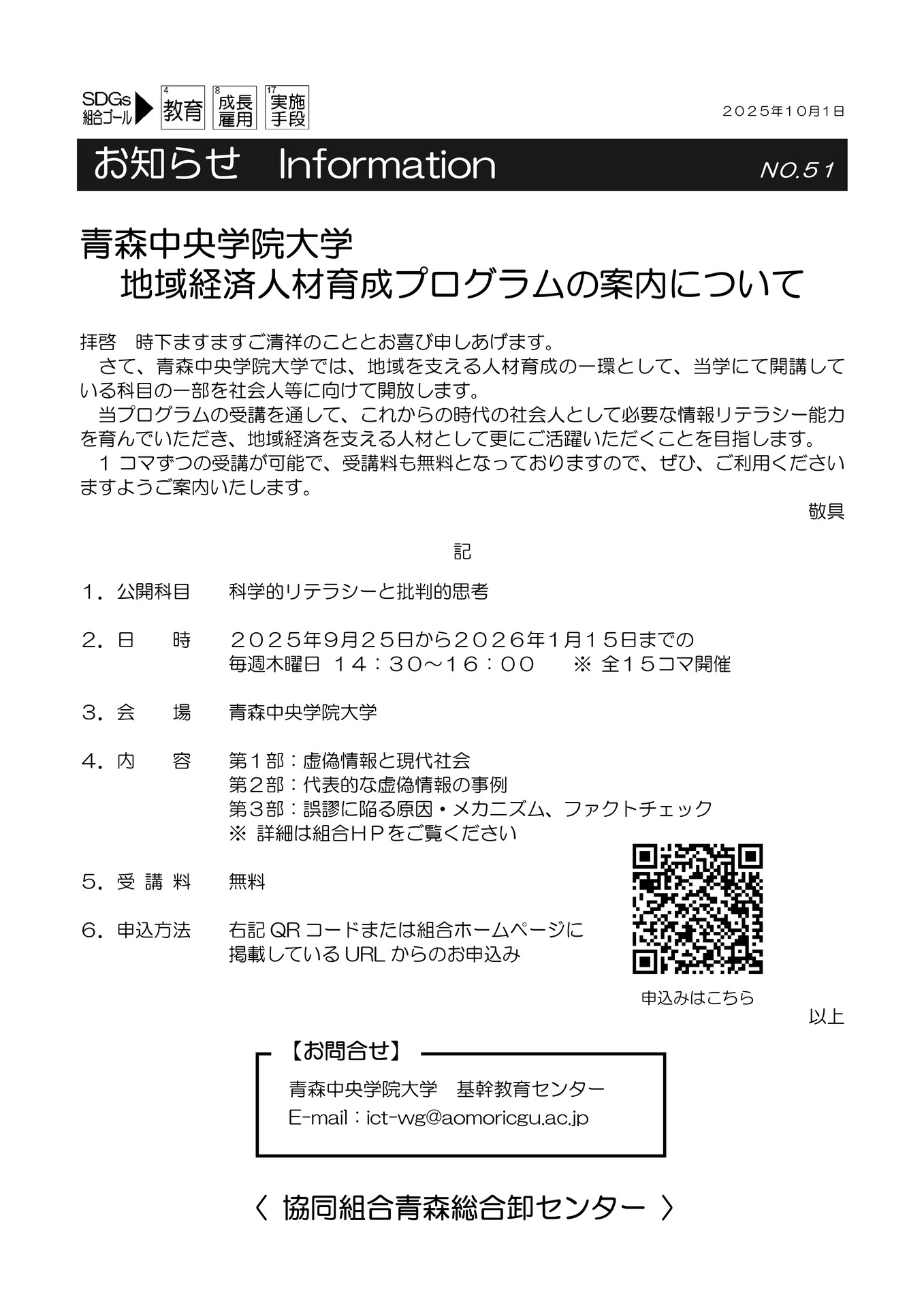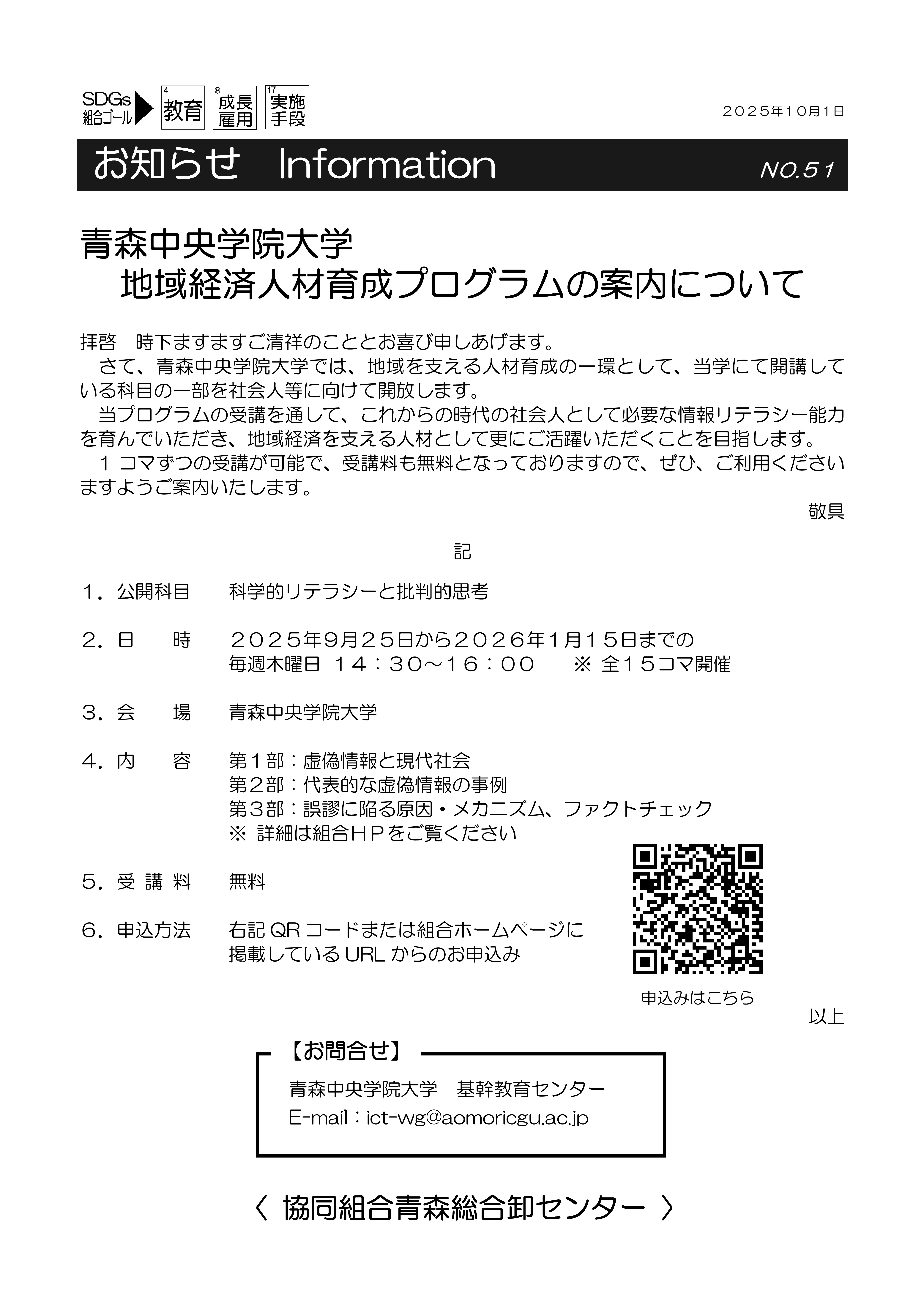 青森中央学院大学 地域経済人材育成プログラムの案内について