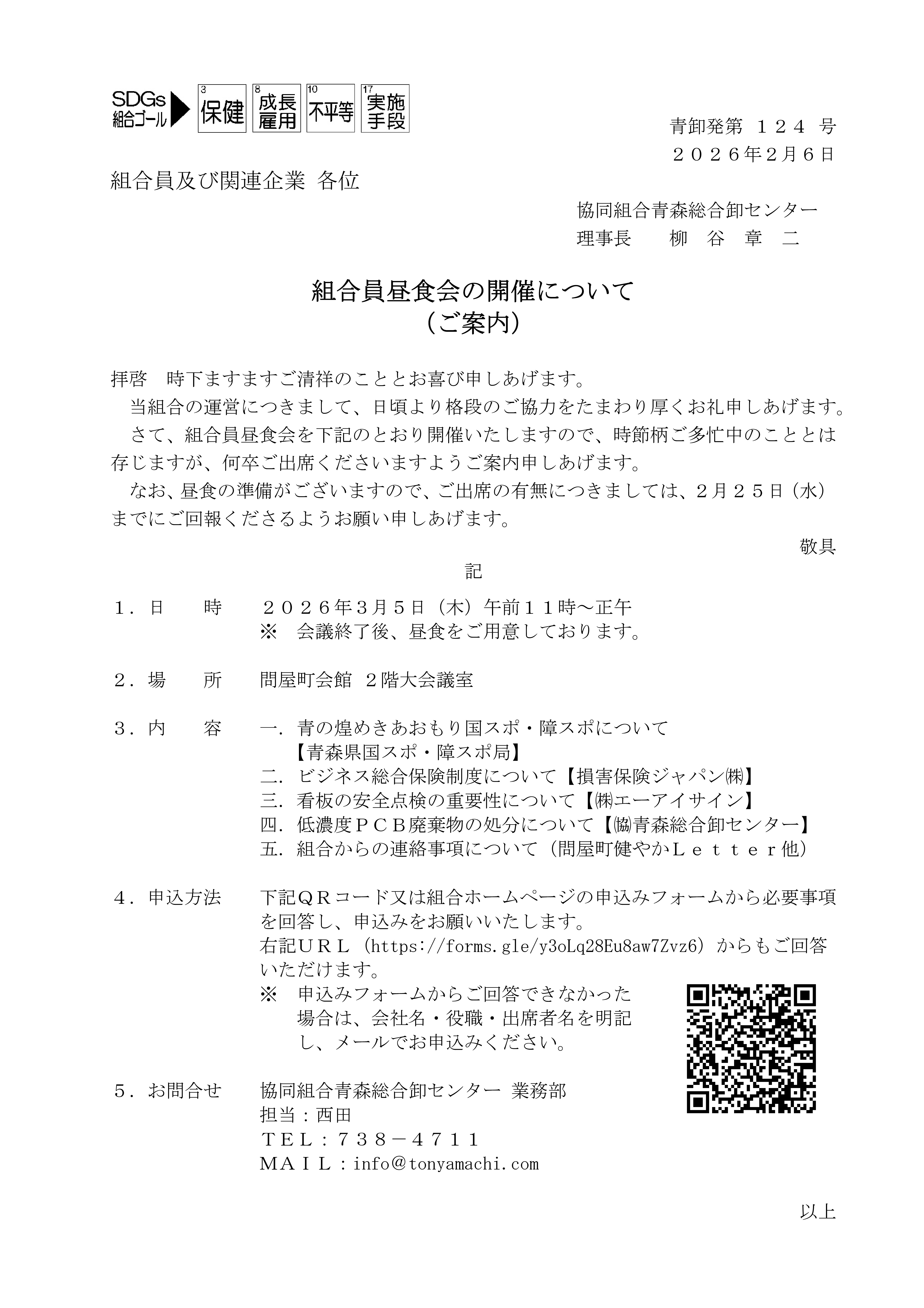 組合員昼食会 参加申込フォーム(回答期限:2026年2月25日)