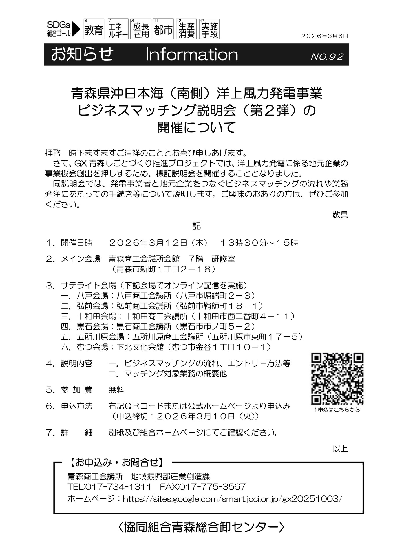 青森県沖日本海(南側)洋上風力発電事業ビジネスマッチング説明会(第2弾)の開催について