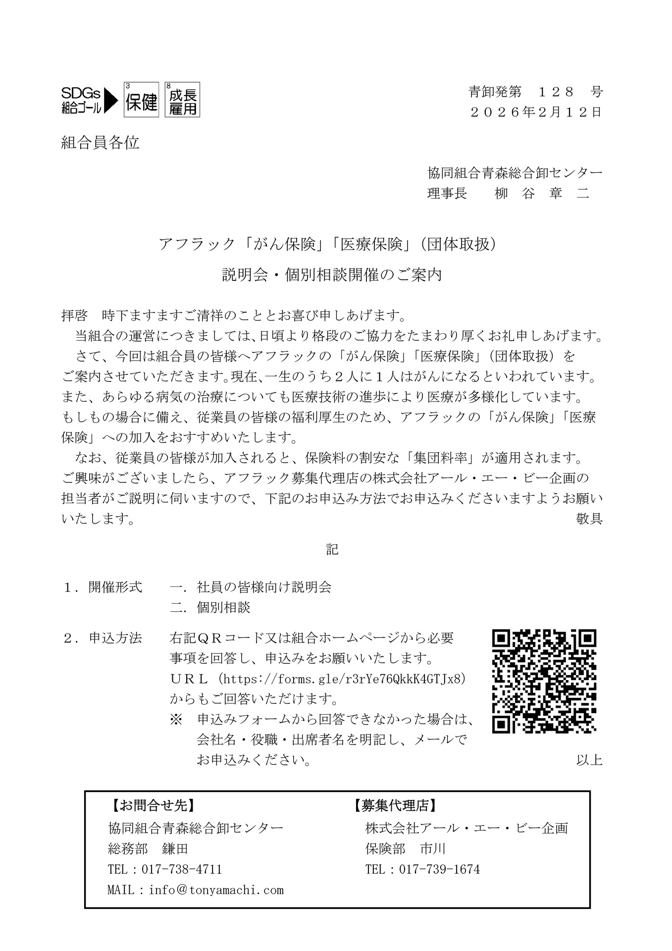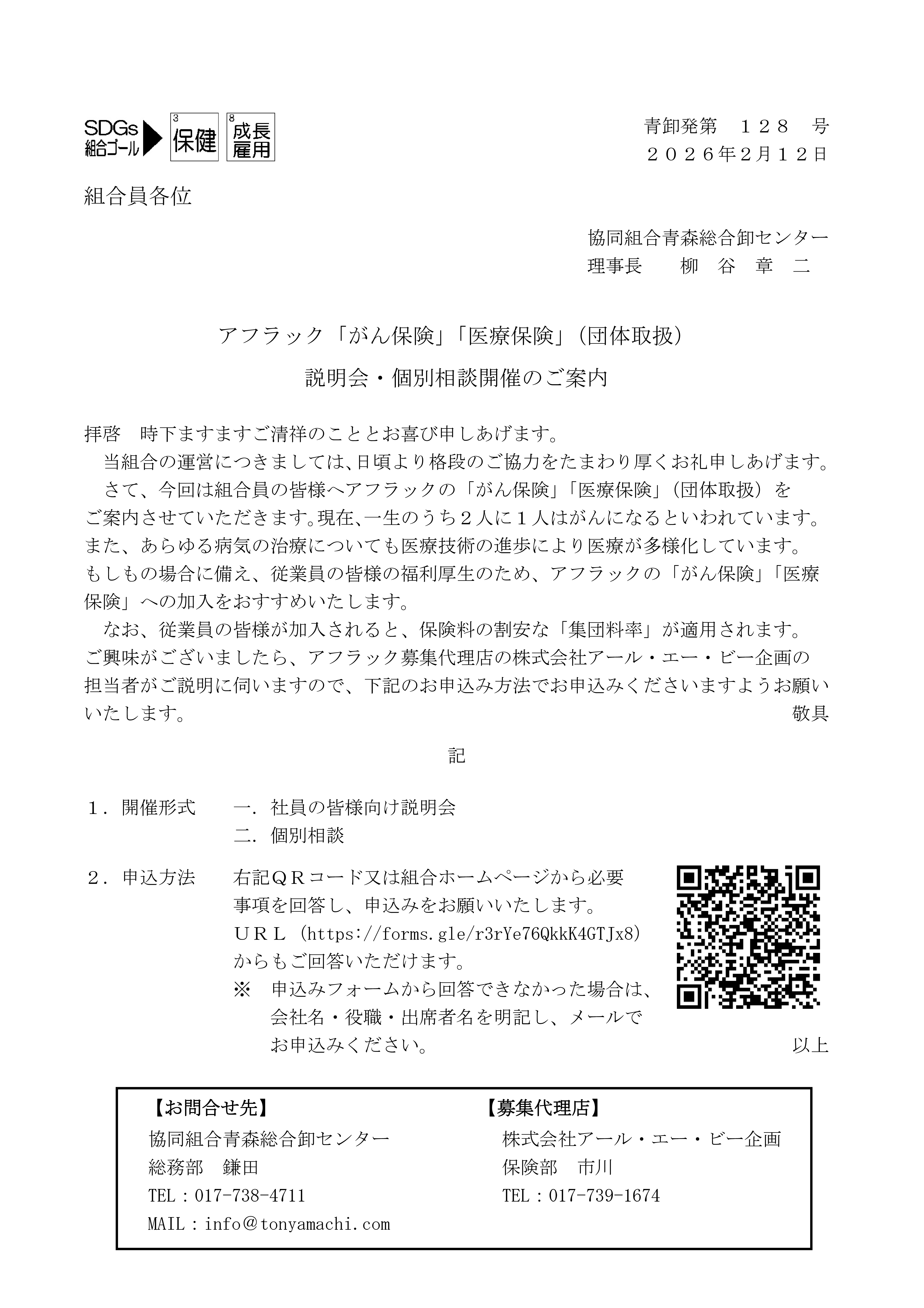 アフラック「がん保険」「医療保険」(団体取扱)説明会・個別相談の開催について