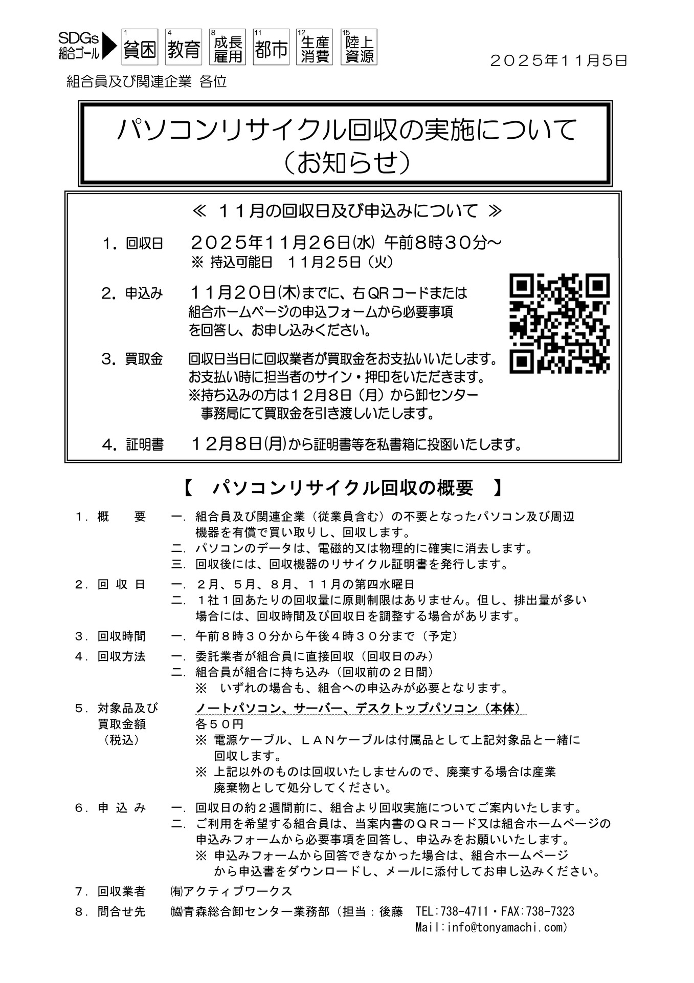 パソコンリサイクル回収 申込フォーム(回答期限:2025年11月20日)
