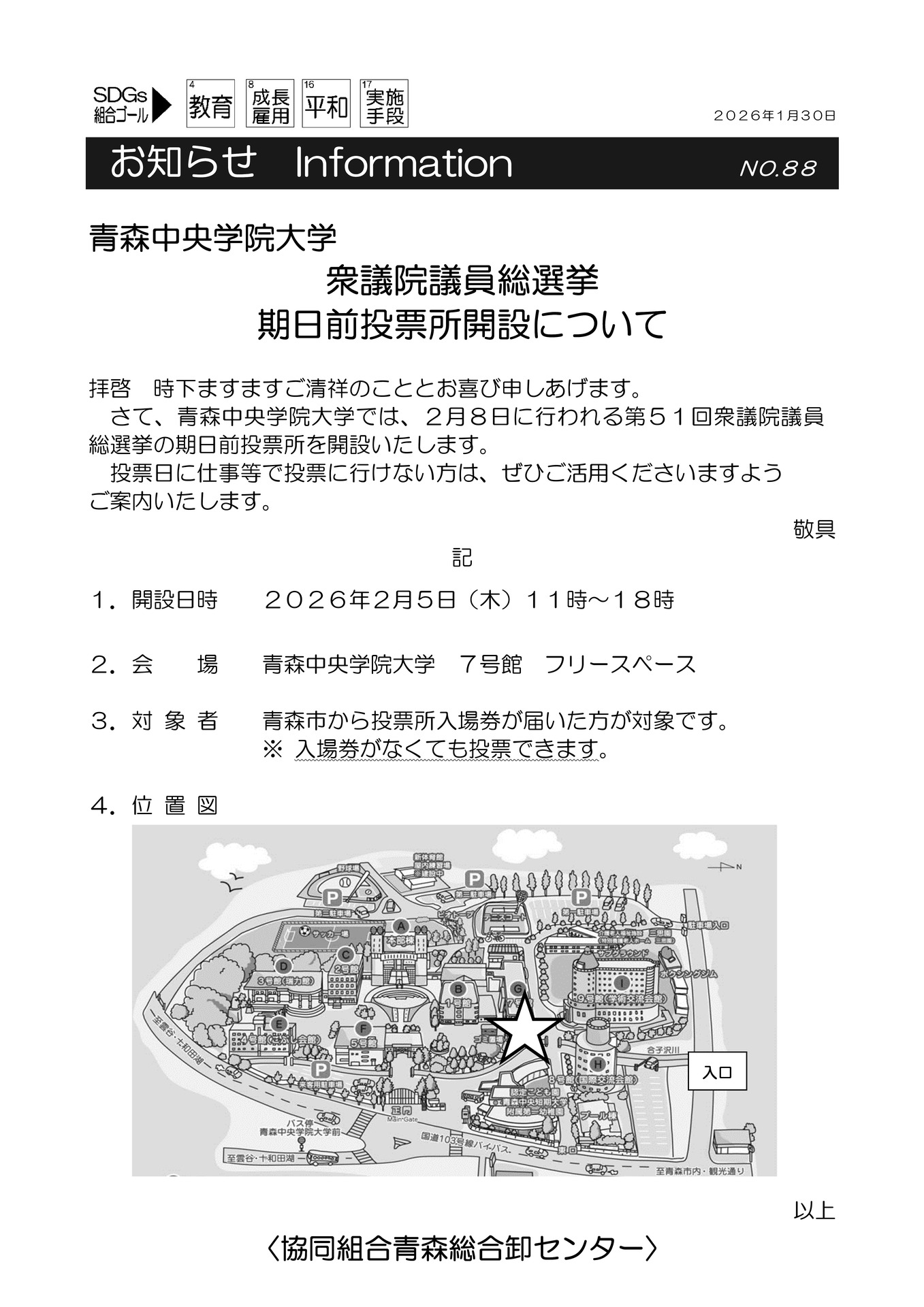 青森中央学院大学 期日前投票所開設 チラシ